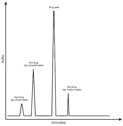 It is important to include a biorelevant medium when diluting the secondary standard (SS) as it keeps the matrix of the working standard (WS) and biorelevant dissolution samples similar. Inclusion of the biorelevant medium helps identify if HPLC injection of the working standard (WS) at the desired wavelength (nm) has any additional (non-drug) peaks and biorelevant medium peaks which could potentially interfere with drug analysis.