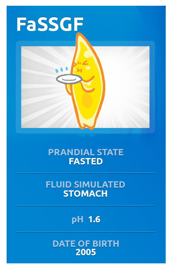 FaSSGF (Fasted State Simulated Gastric Fluid) is a very useful drug development tool. Tests in this dissolution medium can help reveal how your oral drug is likely to behave in the stomach after drinking a glass of water. Although drugs are not generally absorbed in the stomach, the interaction with stomach fluid can influence the absorption of many drugs greatly; this is especially true of bases.