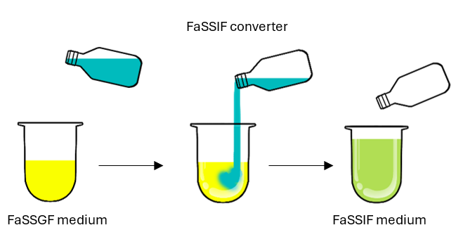 The media for the experiment can be reproducibly prepared using our Two Stage Biorelevant Dissolution Kit. Details for the preparation of the media can be found in the Two Stage Biorelevant Dissolution Guides. An overview of the two stage biorelevant dissolution method is provided below: