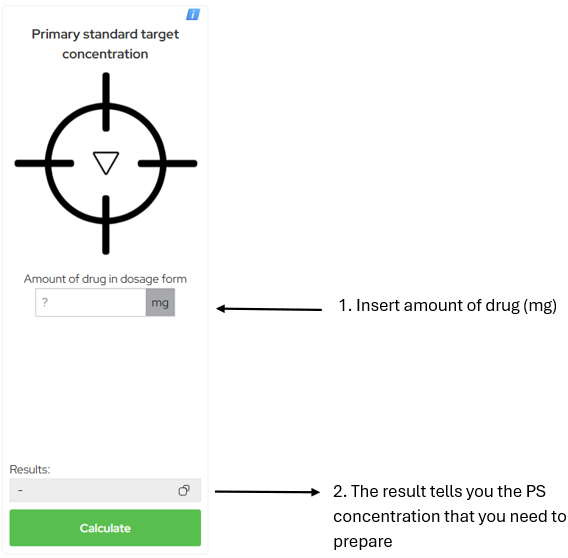 This calculator result will provide the concentration of the primary standard you are targeting.