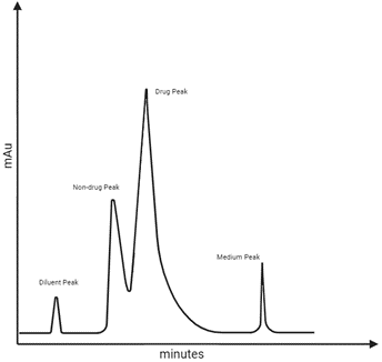 Figure: Poor resolution between Non-drug and Drug peak with having unusual peak symmetry