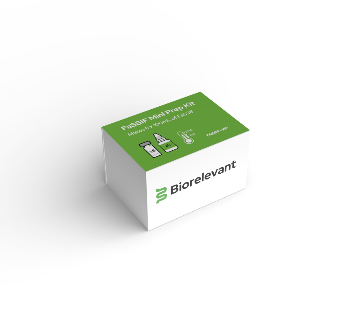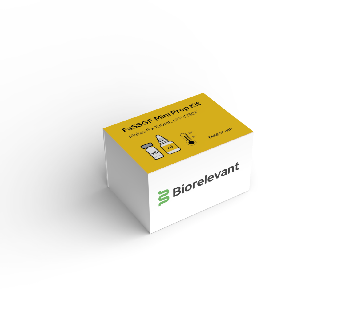 To ensure reproducibility of FaSSIF, FeSSIF and FaSSGF for low volume preparation, Biorelevant Mini Prep Kits have been developed and are now available for purchase on our website. They are ideal for solubility experiments as well as low volume dissolution studies, particularly for new chemical entities.