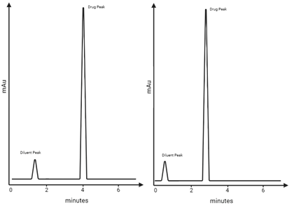 Retention time of the drug can be reduced (right hand graph) if biorelevant drug samples are injected undiluted
